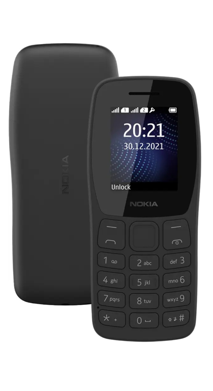 Nokia 105 Classic (Charcoal) with Charger - A reliable keypad phone featuring a long-lasting battery, wireless FM radio, bright 1.8-inch display, and durable design for everyday use.
